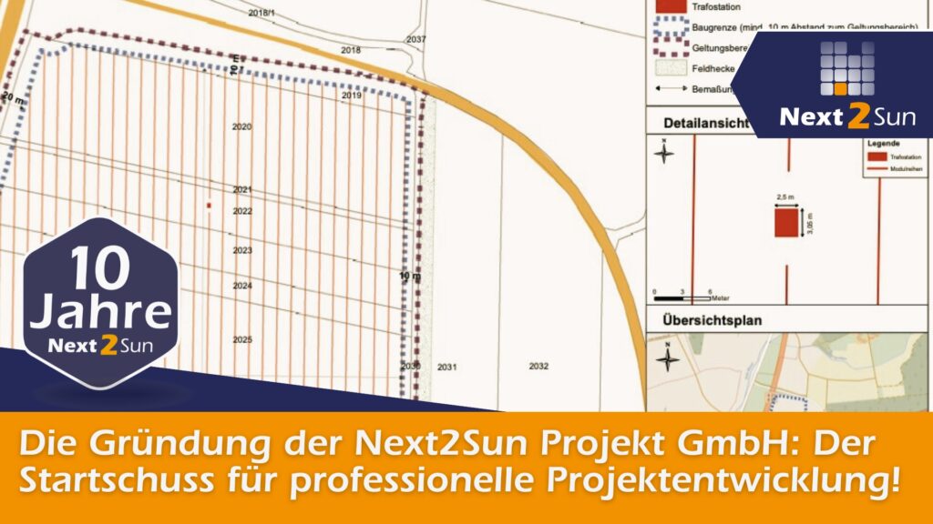 2021 wird die Next2Sun Projekt GmbH gegründet, um Projekte bis zur Baureife zu entwickeln. Die Projekte werden anschließend von Next2Sun selbst umgesetzt oder als Dienstleistungen für Stadtwerke, Energiegenossenschaften und Flächeneigentümer angeboten.
